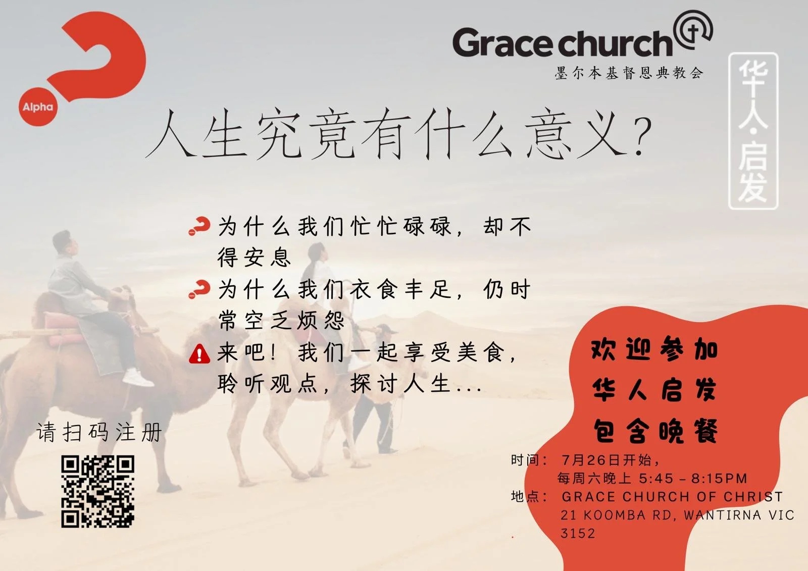 教会常年有循环进行的线下“中文启发课程(Alpha)”,以及在Zoom上进行的信仰探索课程。